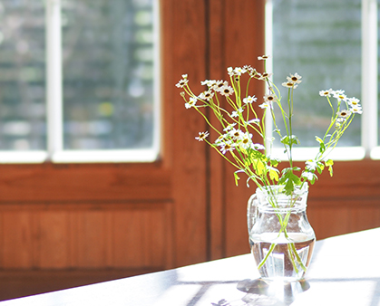 快適な家具や、緑や花、絵画などの癒しのアイテムがあります。